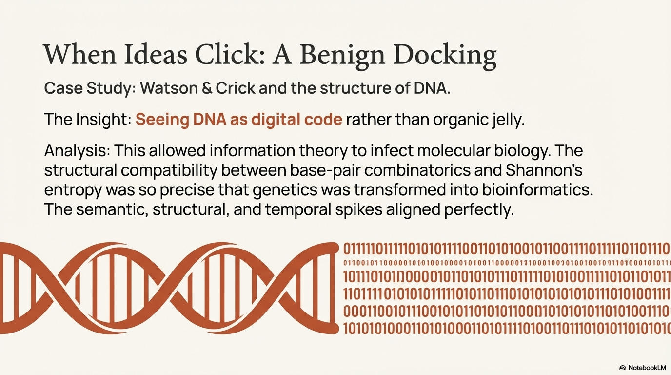 The power of this framework is visible in scientific revolutions. When Watson and Crick began seeing DNA as digital code rather than organic jelly, they allowed information theory to infect molecular biology. The structural compatibility between base-pair combinatorics and Shannon’s entropy was so precise that genetics became bioinformatics overnight.